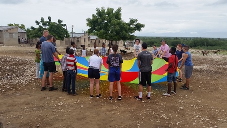 Un grupo de misioneros jugando con los ninos.